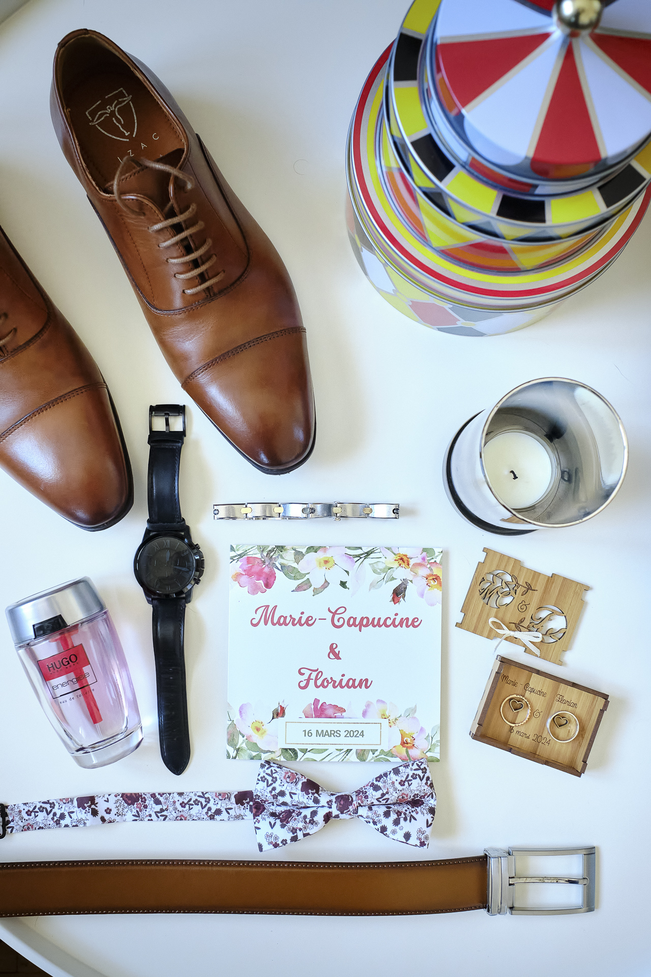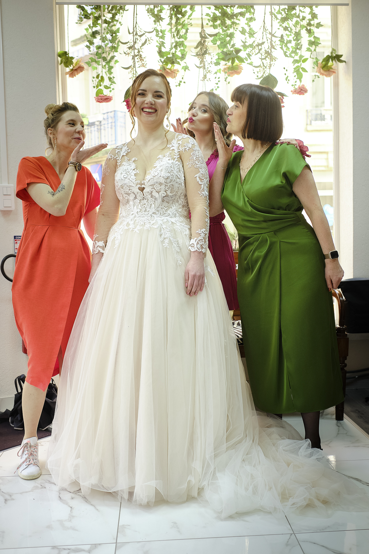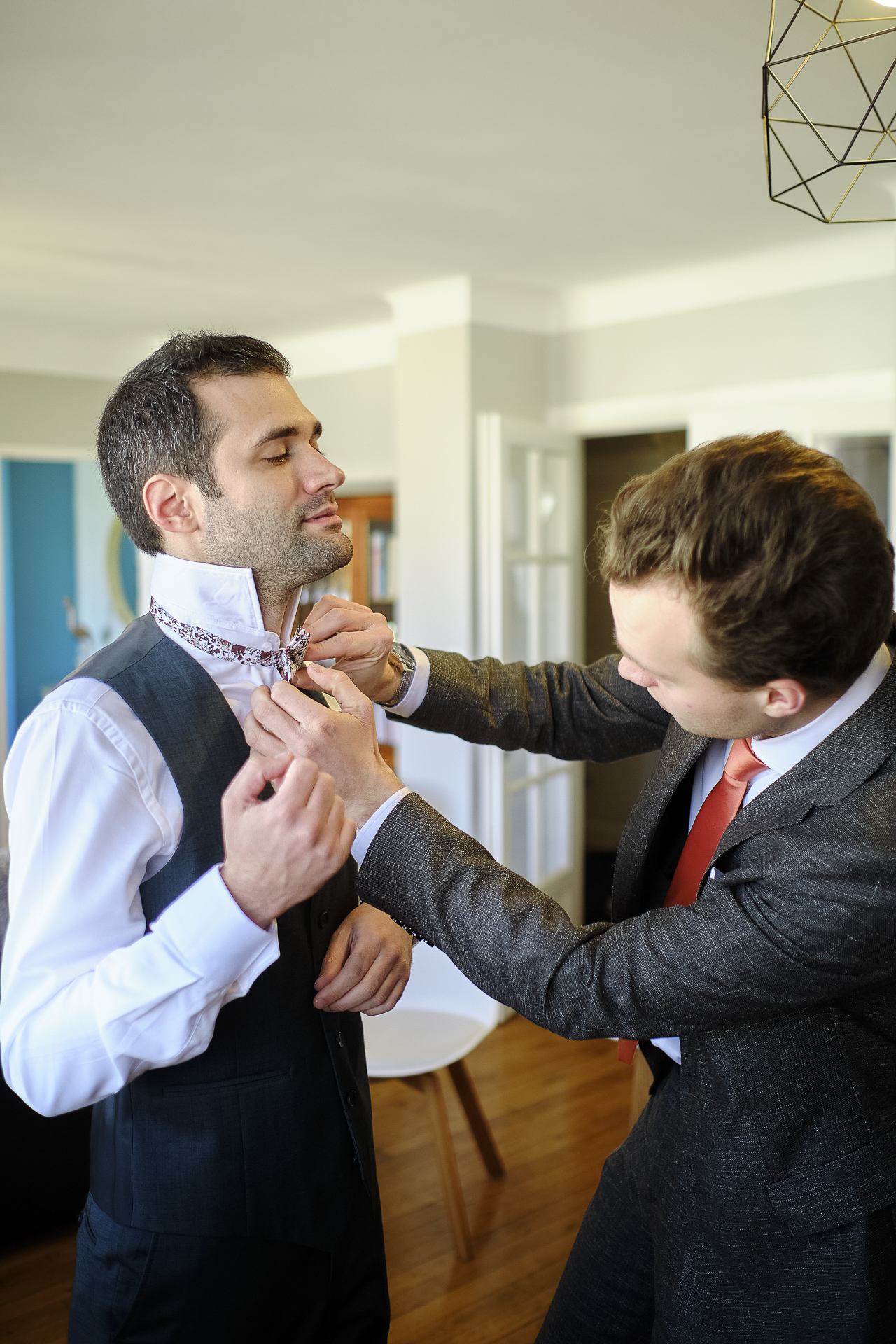 La journée a débuté en douceur avec les préparatifs de la mariée, chez elle. Maquilleuse de profession, elle a pris soin d’elle-même, parfaite pour son grand jour. Après avoir appliqué les dernières touches de maquillage, elle s’est rendue à son institut de beauté, où une coiffeuse professionnelle s’est déplacée pour sublimer sa chevelure. Entourée de sa mère, de ses proches et de ses demoiselles d’honneur, elle a été chouchoutée dans une ambiance chaleureuse et joyeuse, et chaque instant a été immortalisé à travers mes photos et vidéos.