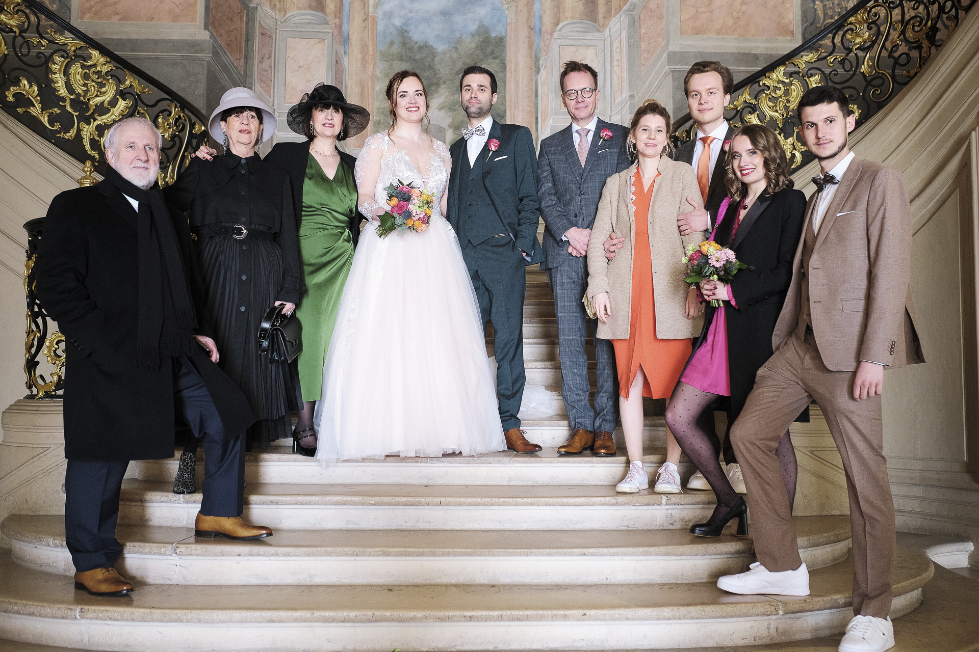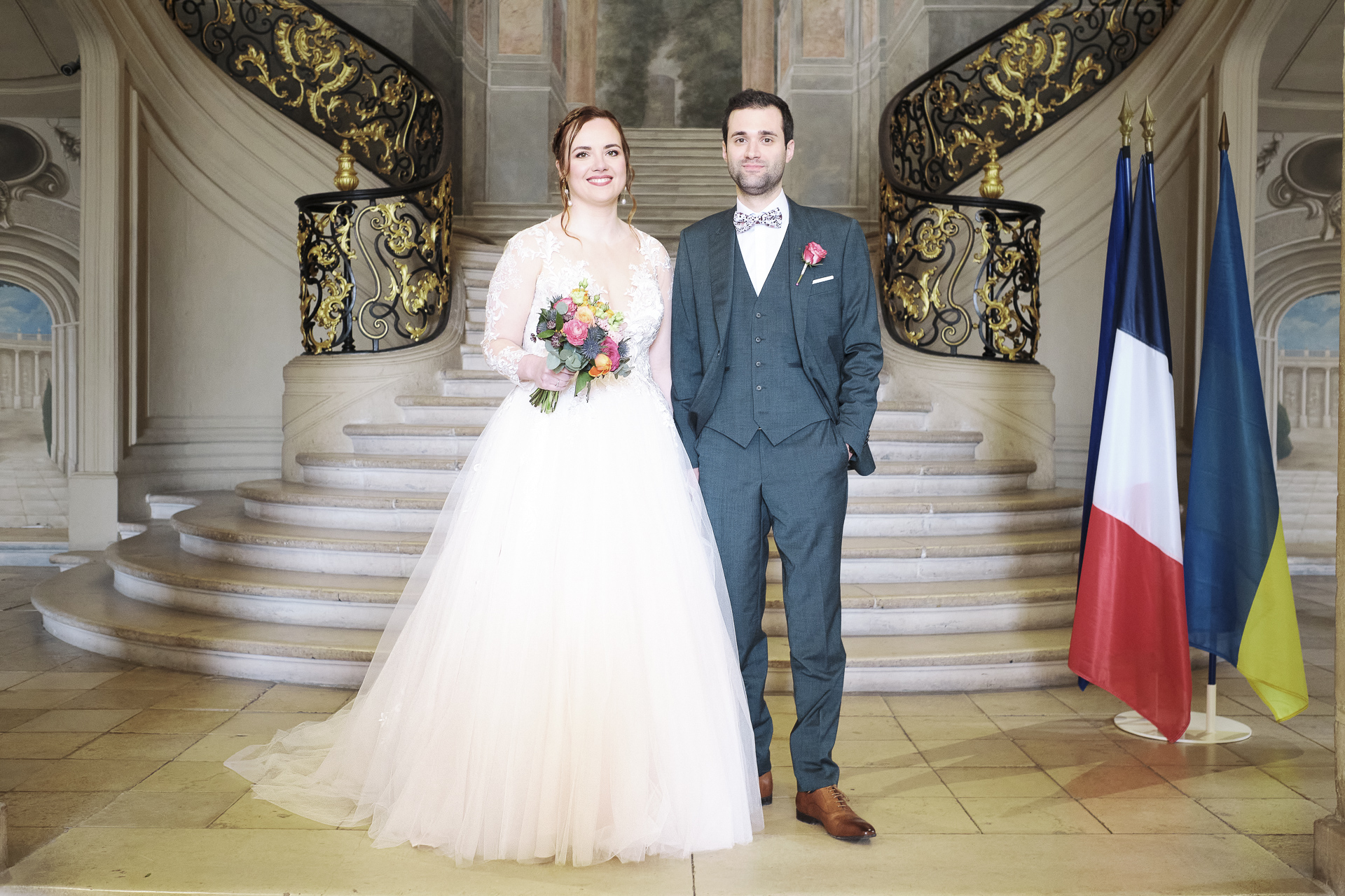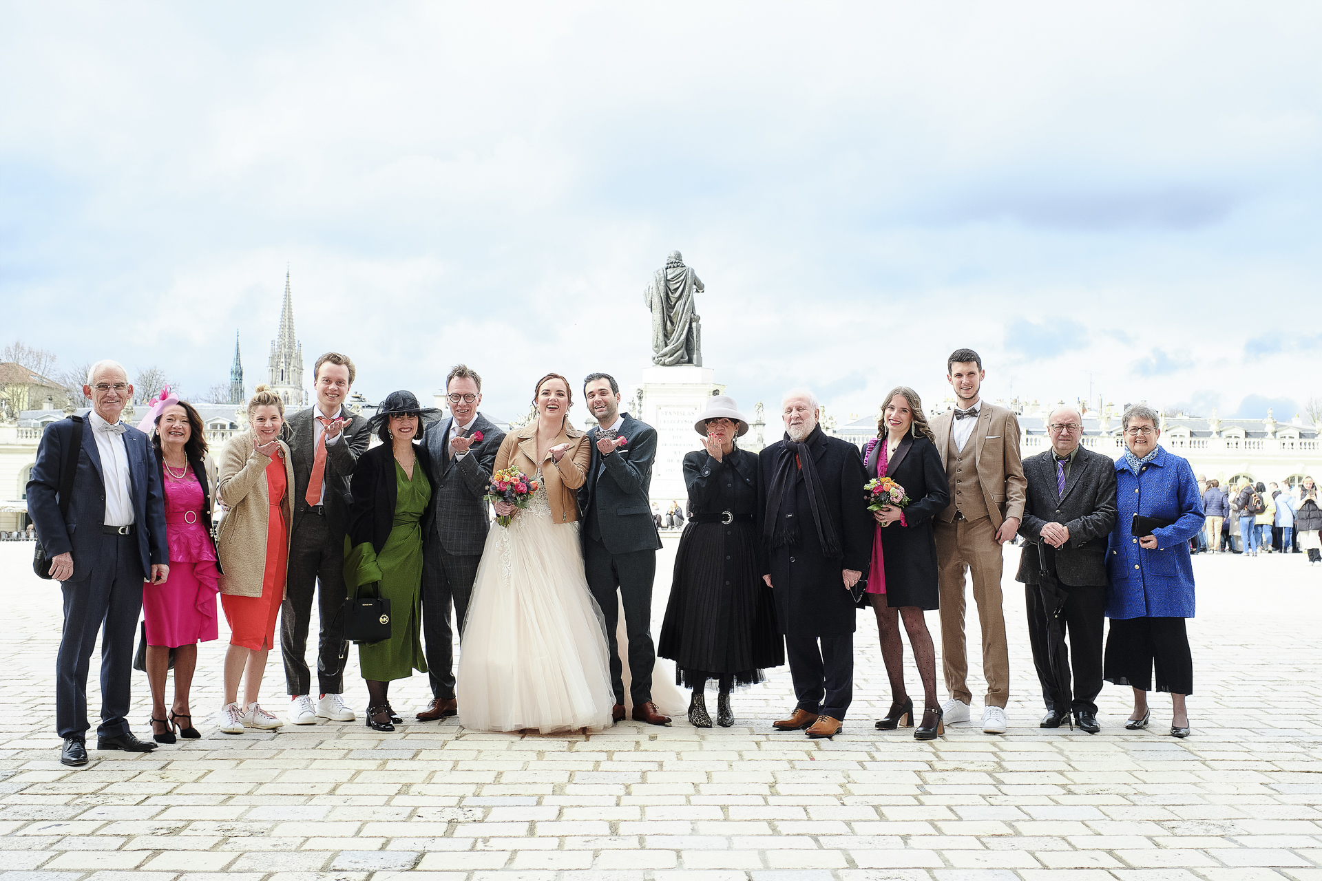 La cérémonie officielle s’est déroulée à la mairie de Nancy, où Monsieur le Maire a uni les deux âmes soeurs. Les invités et la famille étaient présents pour célébrer l’amour du couple. Après l’échange des vœux et des anneaux, nous avons profité de la sortie de la mairie pour prendre des photos de groupe et immortaliser ce moment devant la majestueuse Place Stanislas. L’ambiance était festive et chaleureuse.
